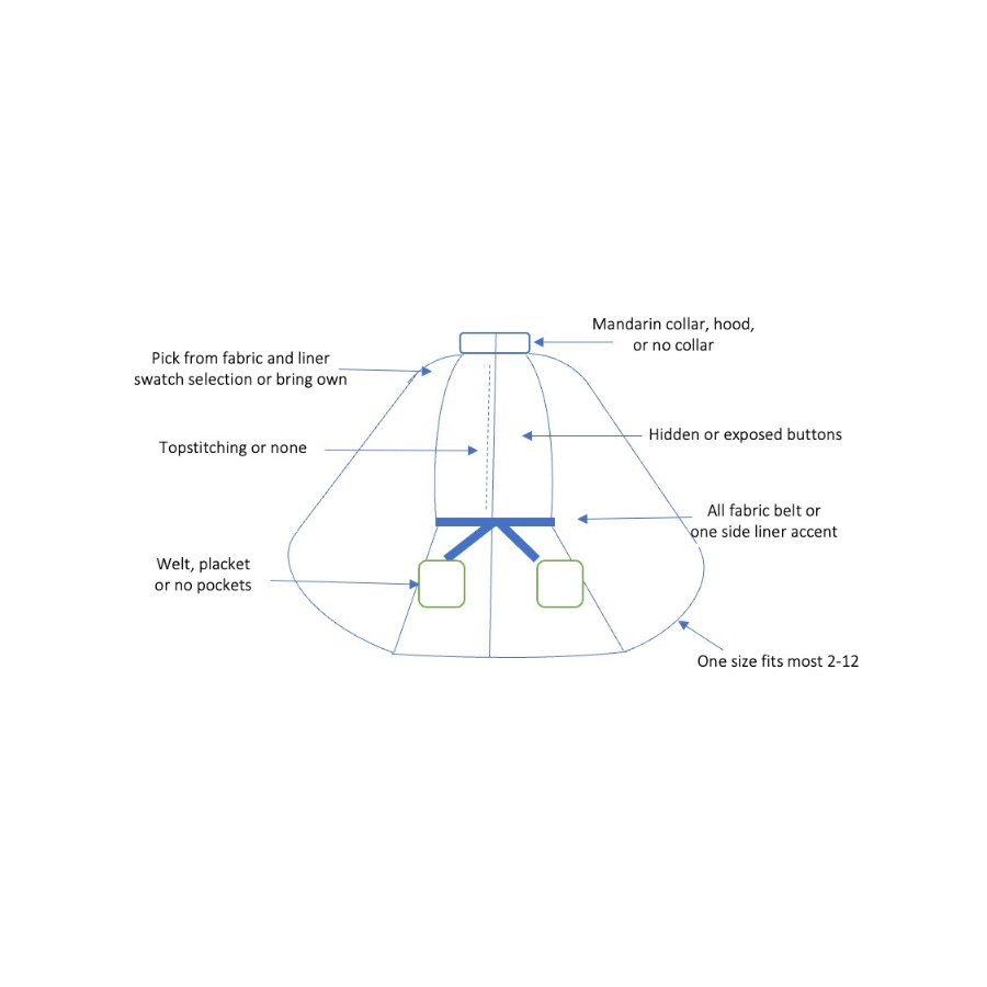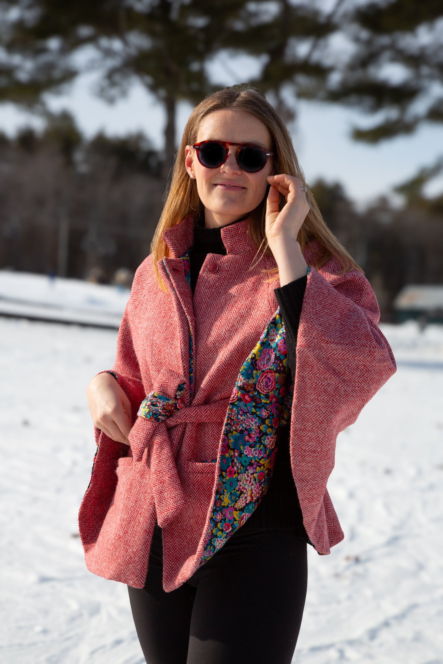 Our "Keepscape" jacket is a hybrid. It has all of the flow and grace of a cape with the suggested structure of a jacket.